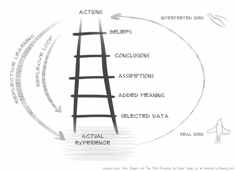 Chris Argyris developed the ladder of inference as a tool for double-loop learning – learning that produces a change in values and assumptions, not just behaviour change. The ladder of inference can be used for different purposes: to reflect on your emotional reactions, to facilitate the discussion of substantive issues, and to give people feedback. It provides a guide for effective advocacy and inquiry and sits comfortably alongside Transactional Analysis.